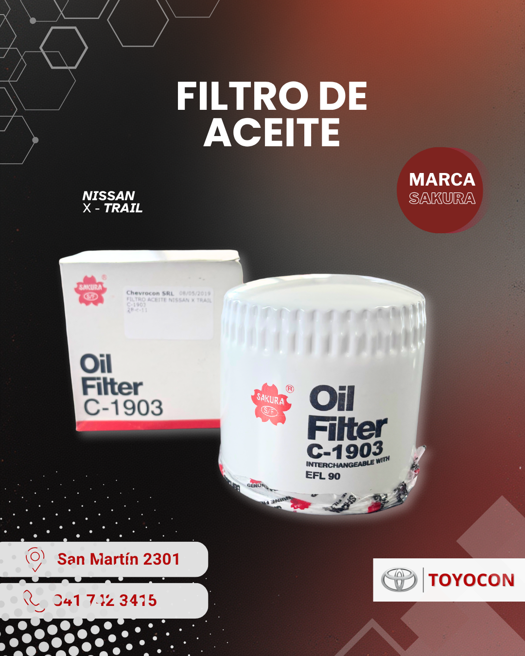 Protección confiable para tu Nissan X-Trail con el Filtro de Aceite Sakura C-1903.