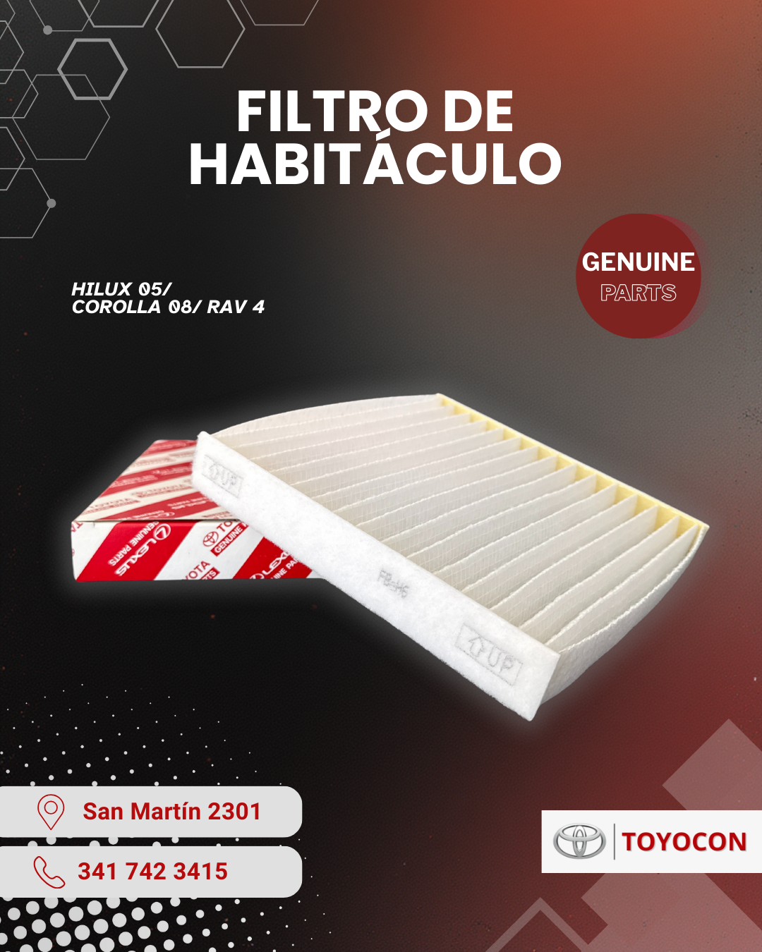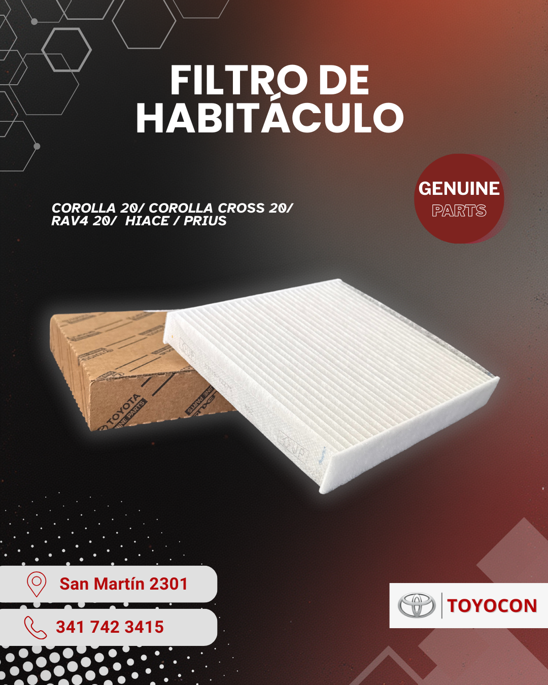Mantené el interior de tu Toyota libre de impurezas con el Filtro de Habitáculo ORIGINAL. 🌬️🇯🇵