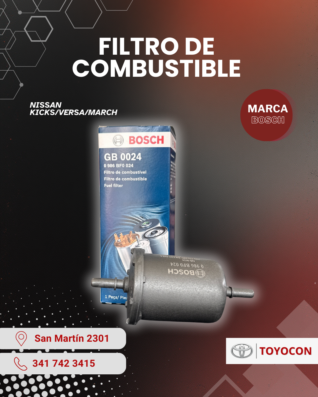 ¡Protección máxima para el sistema de inyección de tu Nissan Kicks, Versa o March! Filtro Bosch GB 0024.