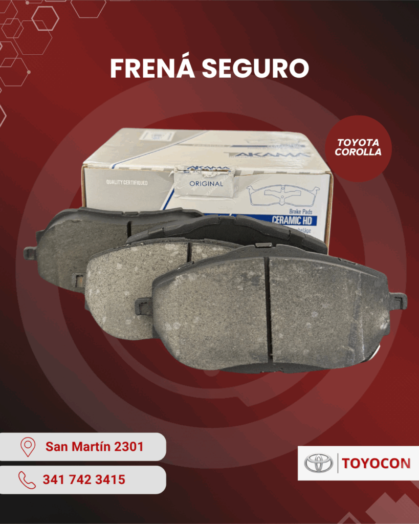 Desde Toyocon, te podemos asegurar que estas pastillas están diseñadas para brindar una frenada segura y eficiente en tu Corolla fabricado entre los años 2014 y 2019. Son una pieza clave para mantener el rendimiento y la seguridad de tu auto.